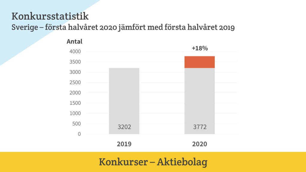 Antalet konkurser i Sverige har ökat kraftigt under årets första sex månader. Plus 18 procent fram till och med den siste juni.