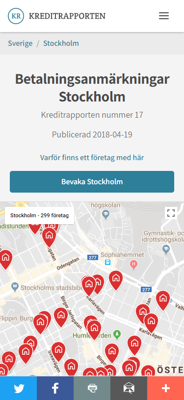 På kreditrapporten.se kan du också bevaka din ort genom att prenumerera på betalningsanmärkningar. Välj enskilda orter eller län och få mejl varje vecka det har kommit in nya anmärkningar.